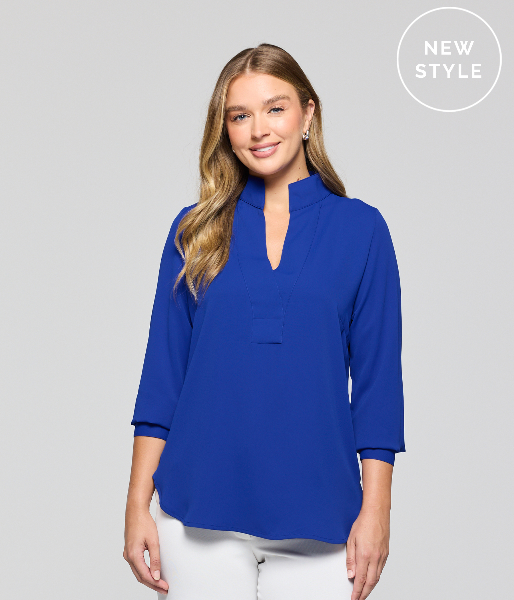 The effortlessly chic long-sleeve Asha features a neat stand collar, scooped hem and half-placket neckline, with a fitted shoulder and relaxed drape that lightly skims the body. Crafted from our 33% recycled polyester Eco-Twill, it offers pared-back elegance with a breezy, lightweight feel.